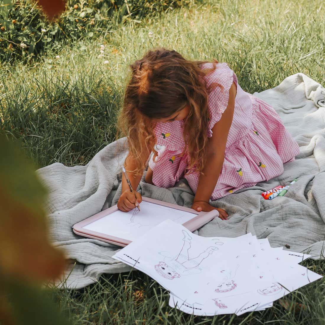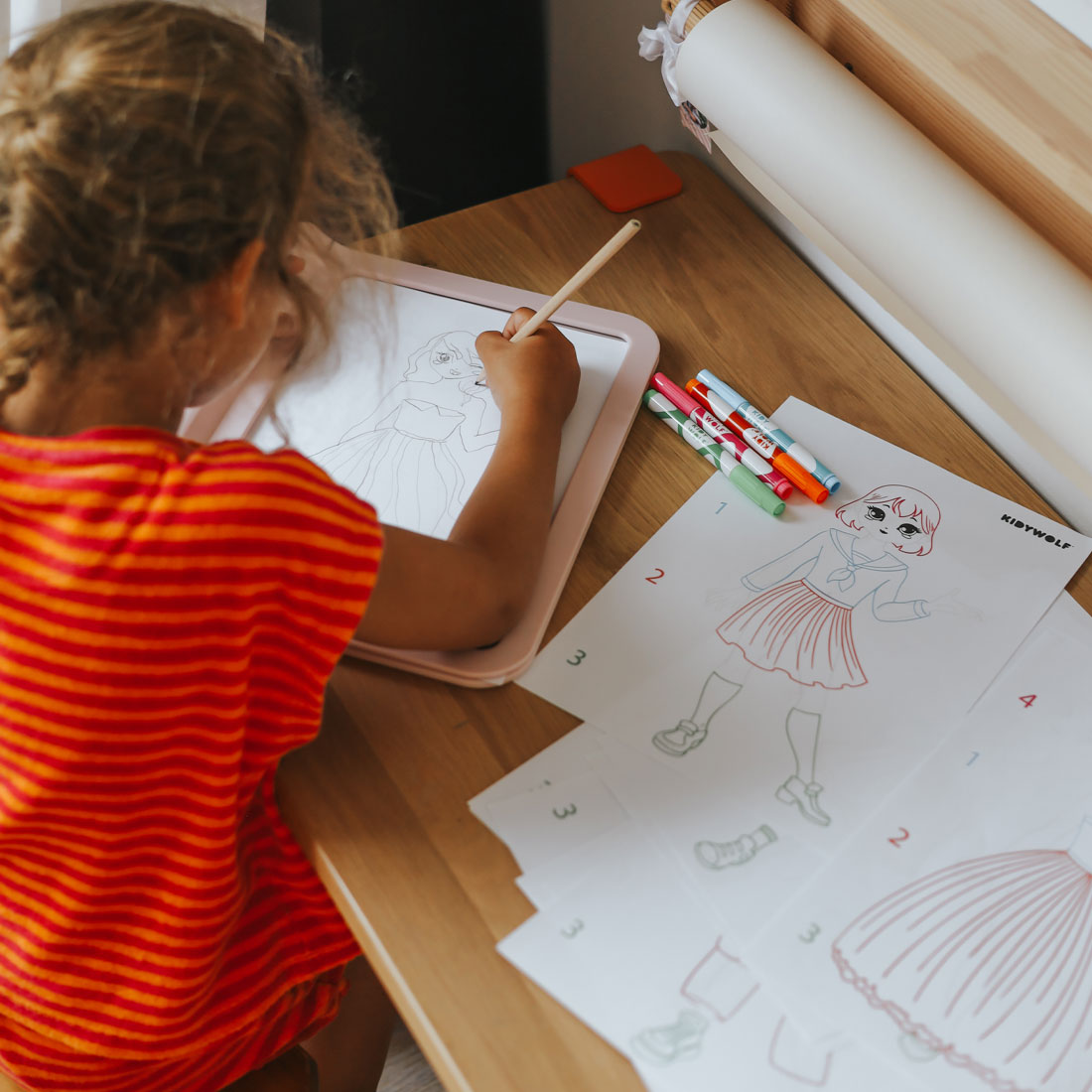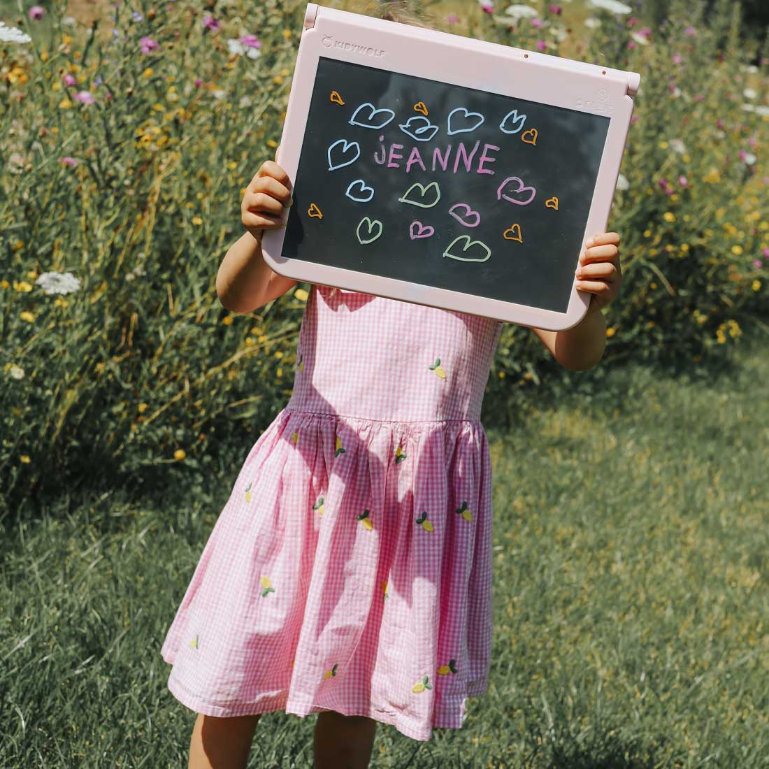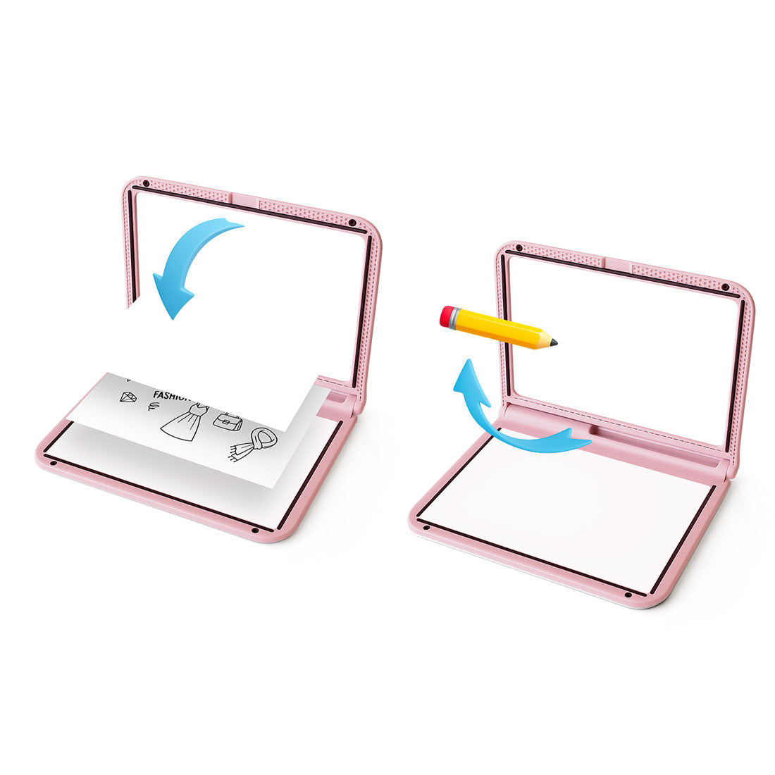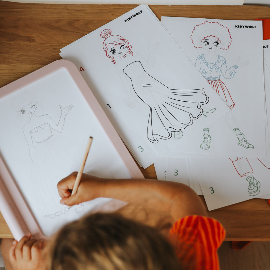 KIDYDRAW PRO Fashion is a portable luminous tablet. Your child can faithfully reproduce letters, numbers or any existing drawing. The two-sided back doubles as a blackboard, with a neon effect that brings out the colours of your child's drawing in the dark.