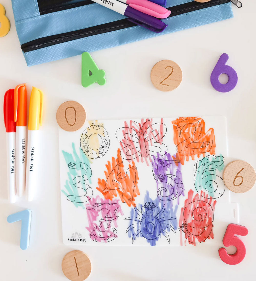 Introducing Number Fun, where the magic of numbers meets the charm of adorable animals on a compact canvas of creativity! This mini reusable mat transforms counting into an engaging adventure as the numbers 0-9 take the shape of delightful animals.